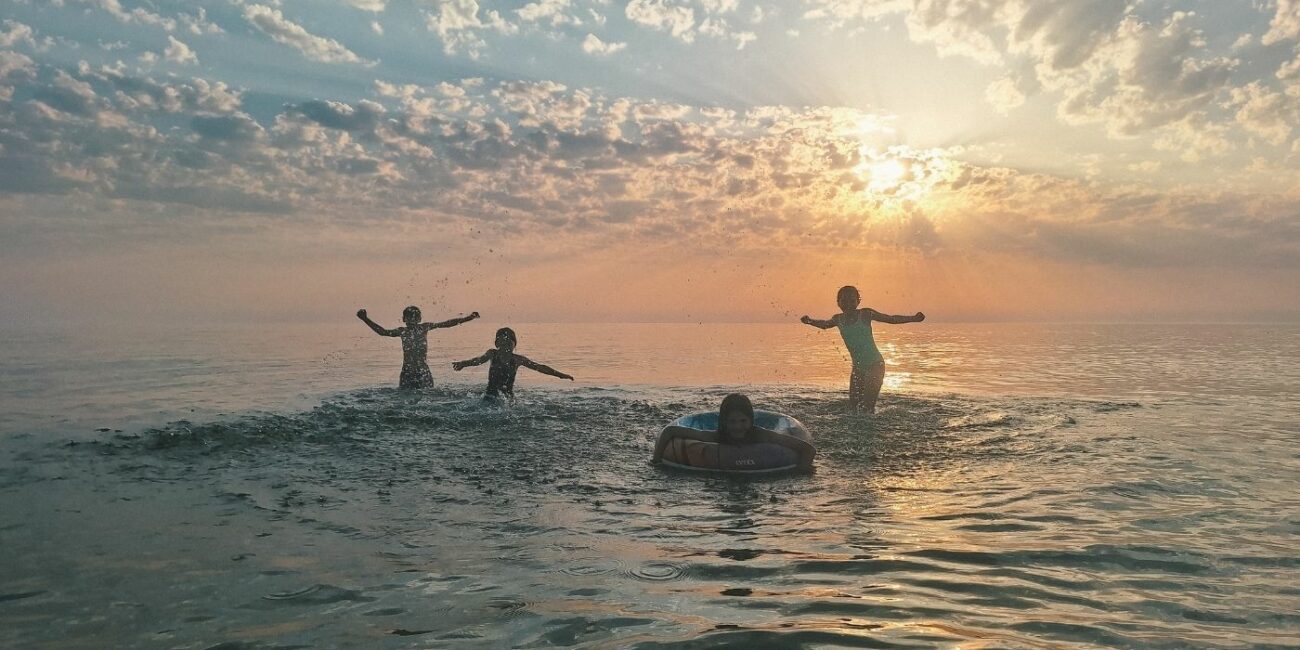Quatre enfants, une mer froide, un soleil qui tombe. Un instant suspendu.