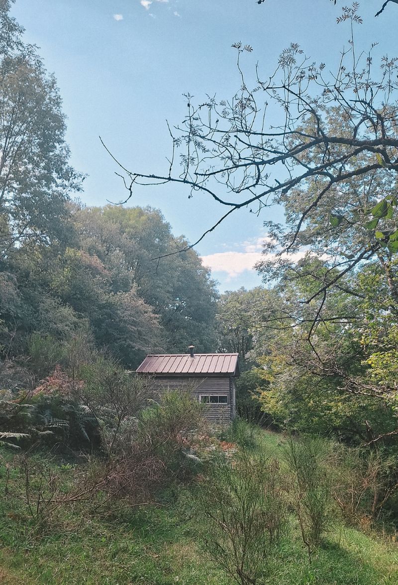 Après ces jours de route, l’arrivée a eu comme un goût de déjà-vu. On quitte la grande route, on grimpe un peu, et soudain le décor change : une clairière, une maison en bois avec son toit rouge, et autour d’elle, les collines couvertes d’arbres. On croirait que le temps s’est arrêté.