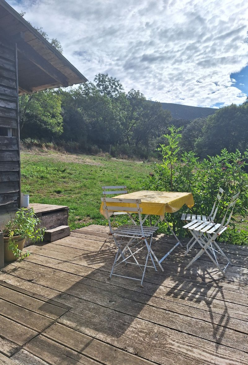 La maison de Malika est simple et chaleureuse. Bois, pierre, terrasse en planches, table de jardin avec nappe jaune… tout respire une vie tranquille, calée sur le rythme du soleil et des saisons. Dans un coin, une vieille caravane repose sous les arbres, prête à servir d’abri. Le jardin, foisonnant, est un monde à part : arbres fruitiers, fleurs, légumes qui poussent un peu dans tous les sens, comme un désordre généreux.